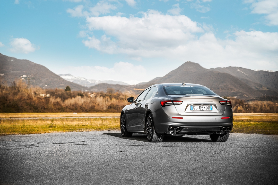 Elegante, raffinata, potente, veloce e ora anche ibrida. Abbiamo provato la nuova vettura della casa automobilistica del Tridente, messa gentilmente a disposizione per l’occasione dalla concessionaria Scuderia Blu, nella splendida cornice del Volo a Vela di Valbrembo. Esternamente la Ghibli Hybrid si riconosce per il blu in cui sono dipinte le tre classiche prese d’aria laterali, le pinze dei freni e la saetta all’interno dell’ovale che racchiude il Tridente sul montante posteriore. La stessa tinta si ritrova nell’abitacolo vettura, in particolare nelle cuciture che ricamano i sedili. Oltre allo schermo, che è passato da 8,4 a 10,1 pollici ed è diventato HD e ultra sensibile, ci sono una serie di nuove funzionalità, a partire dalla connessione costante che si sfrutta al massimo nella navigazione, nella manutenzione e nel dialogo con l’auto da remoto. Per mantenere la purezza di guida ed il classico DNA sportivo di Maserati, la casa modenese ha dunque optato per una soluzione Mild-hybrid a 48V, capace di assicurare un peso più contenuto a tutta la vettura (circa 1750 kg). In questo modo si è potuto lavorare maggiormente sul 2.0 turbo benzina, da cui l’Innovation Lab di Maserati è riuscita a sviluppare ben 330 CV (il motore ibrido stradale con la potenza specifica più alta), mentre l’insieme della coppia generata dal piccolo motorino elettrico e dal booster le fanno raggiungere quota 450 Nm. L’energia immagazzinata in fase di frenata, oltre che ricaricare la piccola batteria agli ioni di litio, alimenta un piccolo eBooster elettrico, capace di assicurare un supporto importante all’immediata pressione del gas, lavorando in serie con il turbocompressore tradizionale per annullare il classico turbo lag. In modalità Sport poi, riesce a dare una mano all’erogazione durante tutto l’arco dei giri, ottenendo così un motore capace di spingere forte fino a quasi 6.000 giri. Le prestazioni sono infatti importanti, con uno 0-100 km/h coperto in soli 5,7 secondi e una velocità massima di 255 km/h. Alessandro Belotti