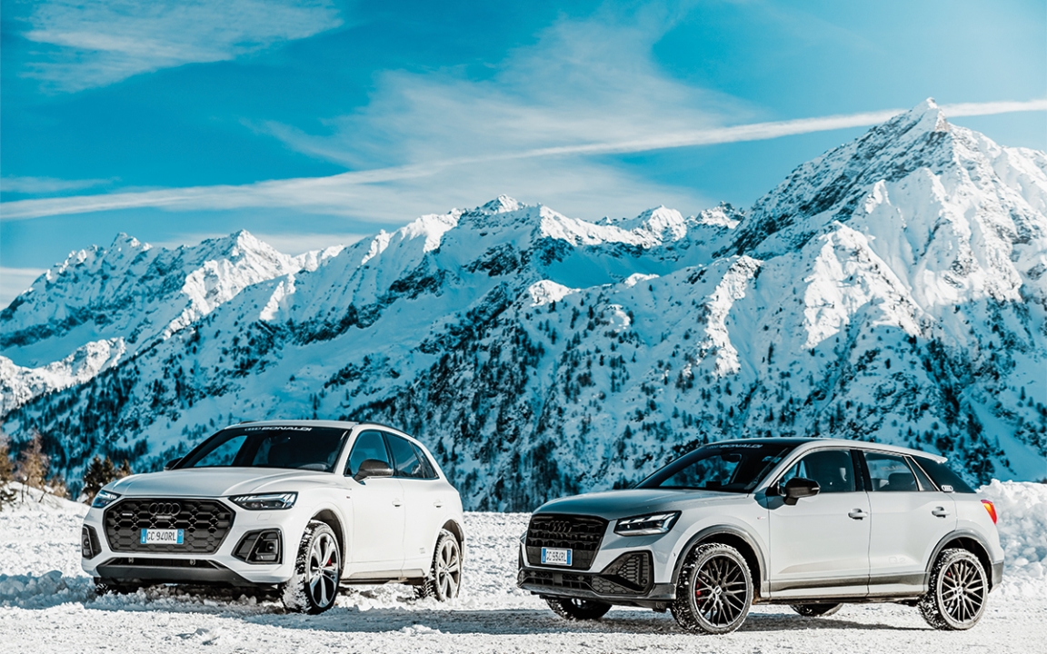 La gamma Q Audi è il fiore all’occhiello dell’offerta dei quattro anelli: Suv eleganti, tecnologici e raffinati. Abbiamo provato le due nuove vetture della casa automobilistica tedesca, messe gentilmente a disposizione della concessionaria Audi Bonaldi Motori, in questa splendida cornice innevata. Imponente e, al tempo stesso, leggera, efficiente e performante, con un design incredibilmente distintivo. Audi Q5 ridefinisce i suoi standard elevando al massimo tecnologia, prestazioni e comfort. Spaziosità e sistemi di assistenza alla guida fanno di Audi Q5 la Q perfetta. L’innovativo design della nuova Audi Q5 è contraddistinto da elementi sportivi e da un carisma senza eguali. Grazie alle sue alte prese d’aria e alla griglia Singleframe ottagonale, piatta e larga, con listelli verticali, il suo frontale scultoreo è caratterizzato da un fascino inconfondibile. I terminali trapezoidali, il diffusore con finiture orizzontali e il listello in alluminio argento opaco che unisce i gruppi ottici posteriori, completano l’opera, dando vita a una vettura dalle linee armoniosamente dinamiche. I gruppi ottici posteriori OLED sono raggruppati in piccoli segmenti e, grazie a un layout tridimensionale, regalano un’illuminazione straordinaria, che rende possibile dar luce a incredibili effetti. All’acquisto della vettura è inoltre possibile scegliere tra tre differenti tipologie di firme luminose per i fari posteriori per aggiungere ad Audi Q5 il vostro personale tocco di stile. Il funzionamento dei fanali può variare a seconda della modalità di guida selezionata. Inoltre i gruppi ottici posteriori OLED portano di serie il sensore di prossimità: quando il veicolo è fermo e un altro si avvicina da dietro a una distanza inferiore ai due metri, tutti i segmenti luminosi degli OLED si attivano automaticamente, segnalando la presenza dell’auto. Per quanto riguarda le motorizzazioni, nuova Audi Q5 è disponibile con quattro motori tutti omologati con WLTP 3.0, di cui un benzina 45 TFSI quattro S tronic con 265 CV e 3 motori diesel: 35 TDI S tronic con 163 CV, 40 TDI quattro S tronic con 204 CV e 50 TDI quattro triptronic con 286 CV. Infine; è disponibile la versione SQ5 TDI da 341 CV, che garantisce un accelerzione da 0-100 in 5,1”. è già possibile ordinare Q5 e SQ5 Sportback, sul mercato dalla primavera 2021. Oltre alla nuova Q5 abbiamo provato anche una vettura in grado di unire la grinta di un SUV urbano e la compattezza di una citycar, in un design completamente rinnovato: è nuova Audi Q2, un’auto che fa tendenza affermando il tuo stile, grazie a infinite possibilità di personalizzazione. Il suo carattere si impone a prima vista, con linee accattivanti e una silhouette distintiva, sottolineata dai nuovi proiettori Matrix LED. I sistemi d’assistenza di nuova Audi Q2 sono di un’altra categoria e semplificano letteralmente la guida: l’Audi pre sense front monitora l’area dinanzi alla vettura prevenendo impatti contro ostacoli improvvisi, l’adaptive cruise assist, disponibile in abbinamento alla trasmissione S tronic, supporta il guidatore regolando automaticamente la distanza dal veicolo che la precede e contribuendo, mediante lievi correzioni dello sterzo, a mantenere la direzione all’interno della corsia sino a una velocità di 210 km/h. Nuova Audi Q2 è disponibile con un motore a iniezione benzina, associato al cambio manuale a sei rapporti oppure alla trasmissione a doppia frizione S tronic a sette rapporti. Si tratta del quattro cilindri 1.5 (35) TFSI da 150 CV e 250 Nm di coppia, con tecnologia cylinder on demand (COD); disponibile anche un motore 30 TFSI da 110 CV e per i più esigenti la versione SQ2: 300 CV che spingono la vettura da 0-100 in soli 4,9”. In alternativa una motorizzazione diesel TDI 2.0 da 150 CV e 360 Nm a partire da 1.600 giri/minuto. Alessandro Belotti