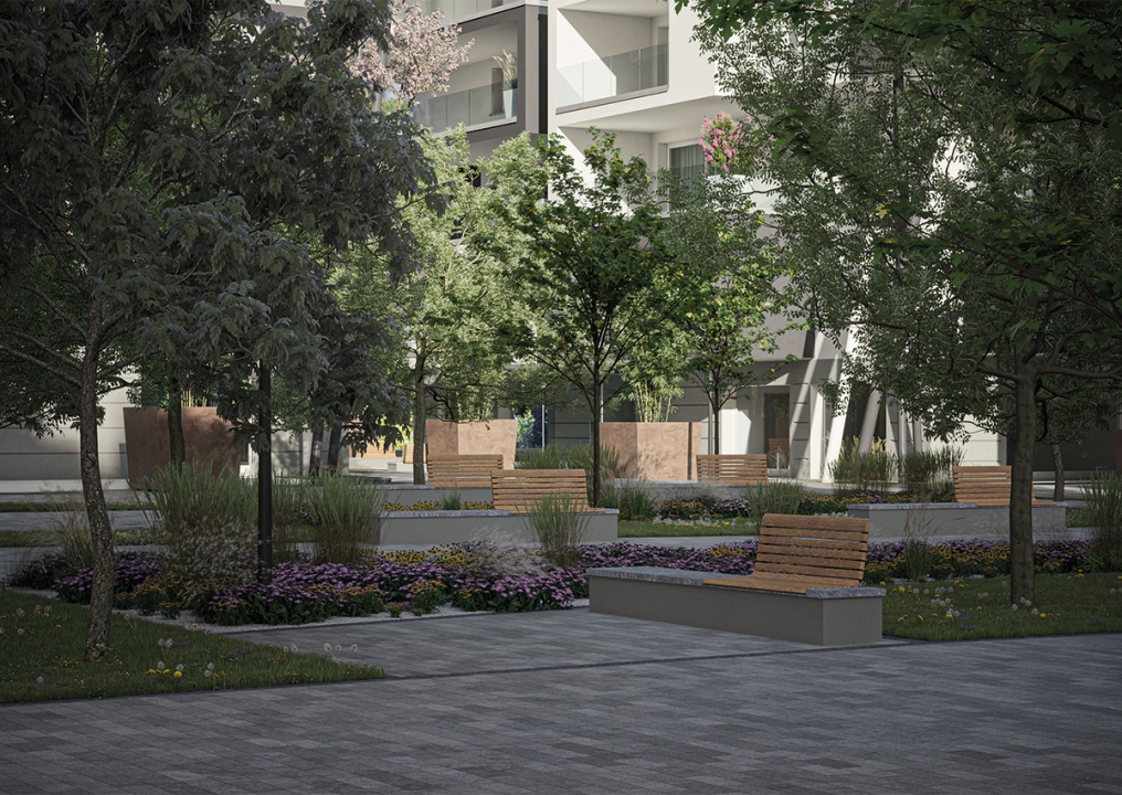 L’auspicio dei realizzatori è quello che questa piazza diventi non solo una residenza prestigiosa, ma un luogo di aggregazione all’insegna della natura, un vero e proprio parco cittadino in cui recuperare quella dimensione di socializzazione sostenibile che da tempo manca nelle nostre realtà cittadine, e non solo a causa Covid. Arianna Mossali